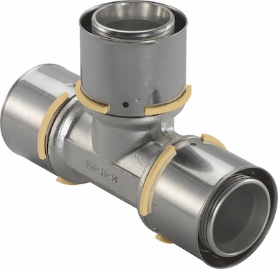 Uponor S-Press тройник редукционный латунный 20-16-16
